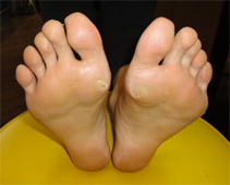 【画像2】甲高(ハイアーチ=土踏まずが高い)で、かかとが細く、足裏全体に重力が分散していないため、足裏のタコがひどい状況でした。