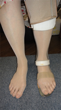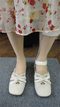 【靴の調整例(装具付きの方の靴の調整例)】 【装具付き】 脳梗塞のため、左足に下肢装具を付けています。 既製靴では、装具側の靴がきつくて履けませんでした。 2足ご持参になり、調整により左右ともラクに履けるようになりました。